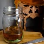 After 3-4 weeks, take another glass jar and a small mesh strainer. Strain off your mint infused honey and discard the used herbs. Label appropriately!